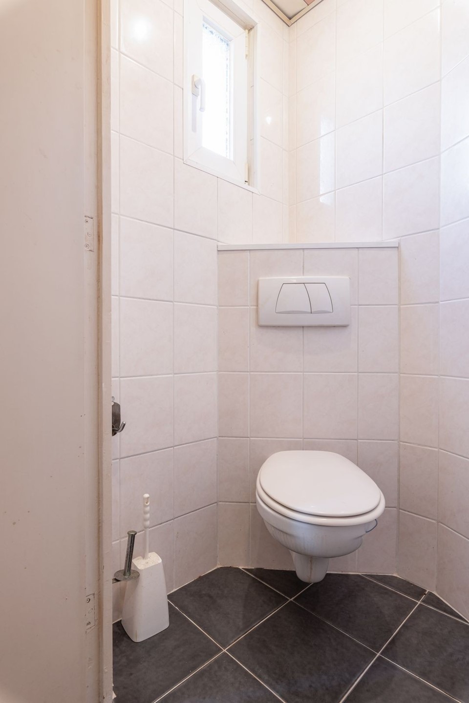 Entree/hal met gastentoilet (hangtoilet) en meterkast.