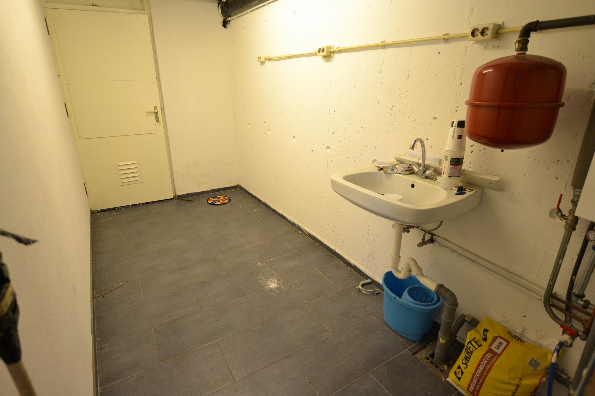 Stookruimte 5,45 x 1,75 met plavuizenvloer, meterkast met slimme meters, wasbak, aansluitingen was-apparatuur, cv-combiketel Remeha Tzerra van 2015 (eigendom) en deur naar garage.