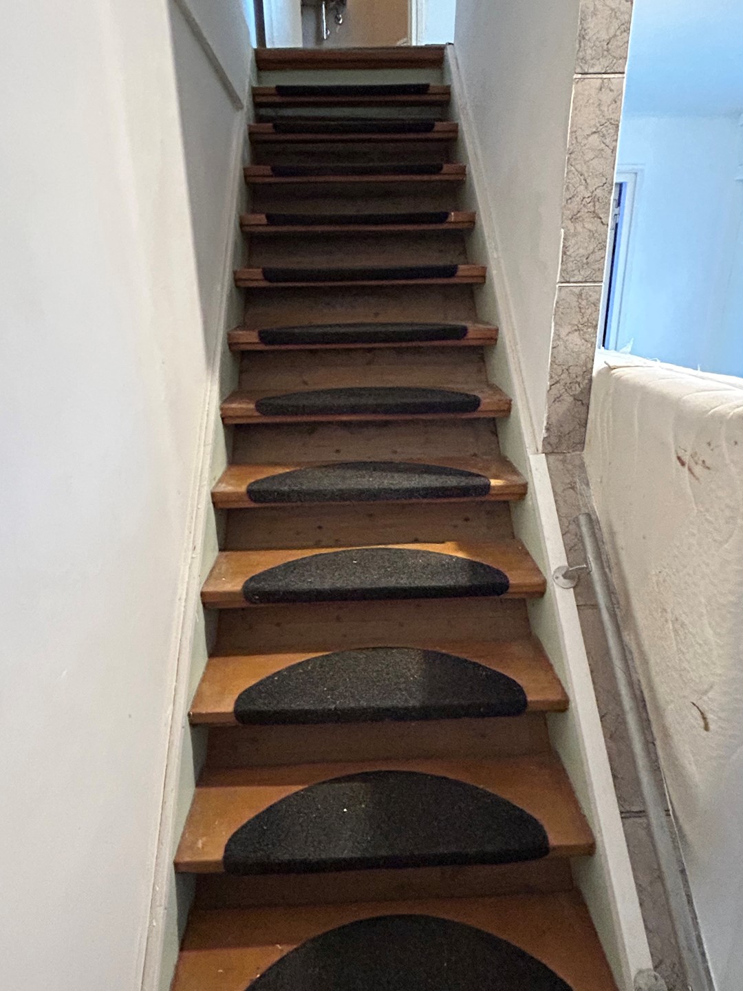 Overloop 3,35 x 1,70 met plavuizenvloer.