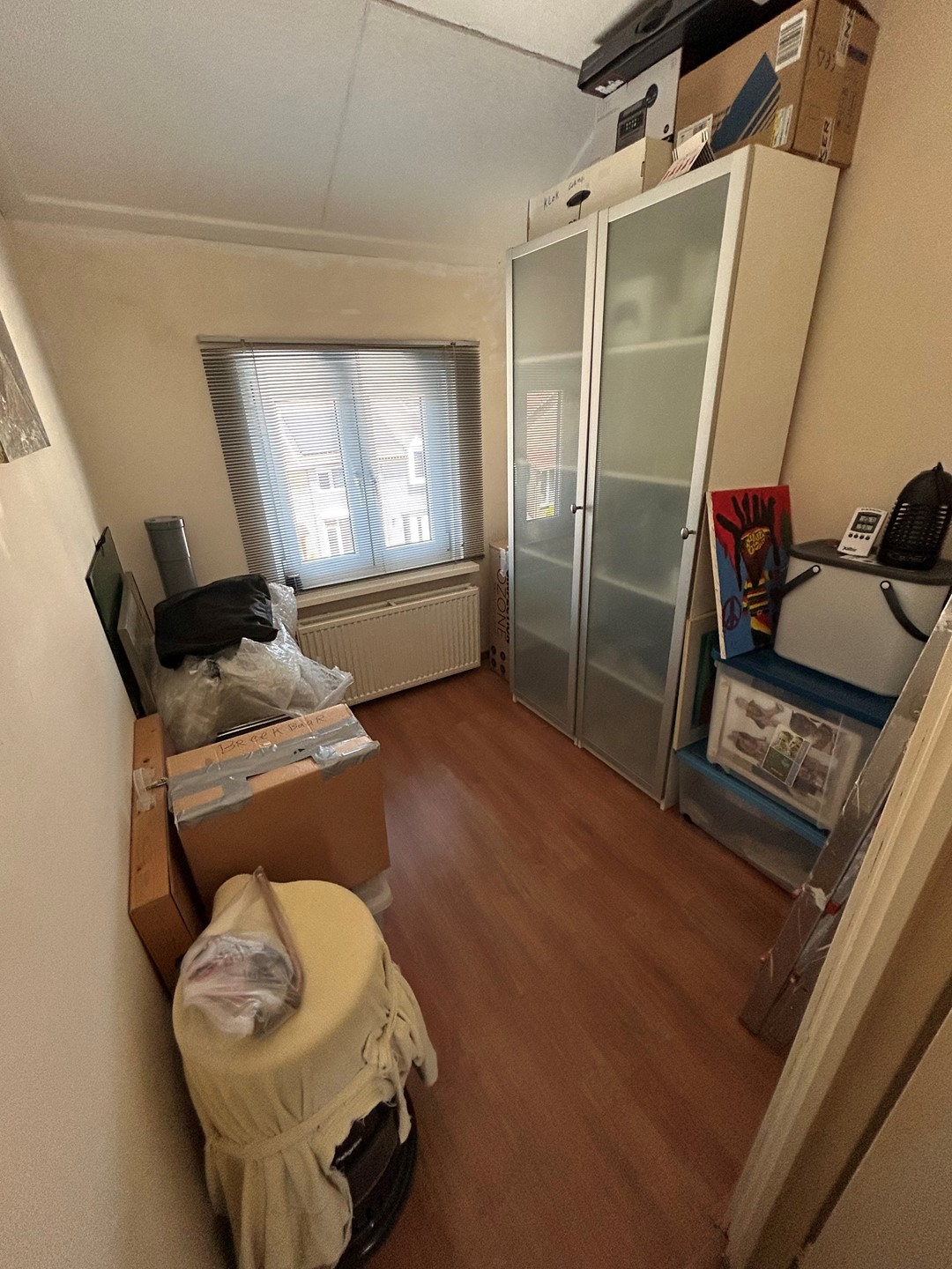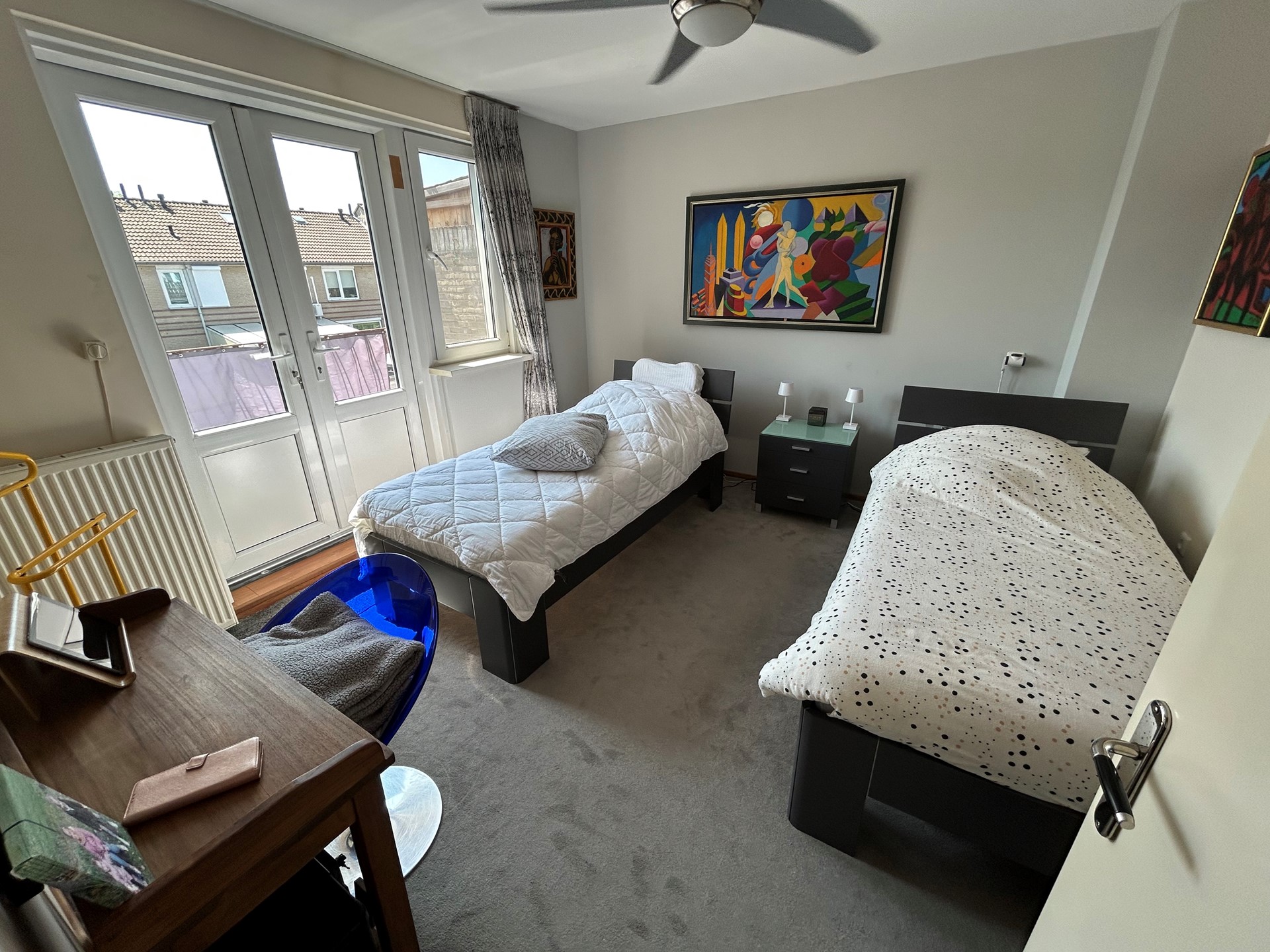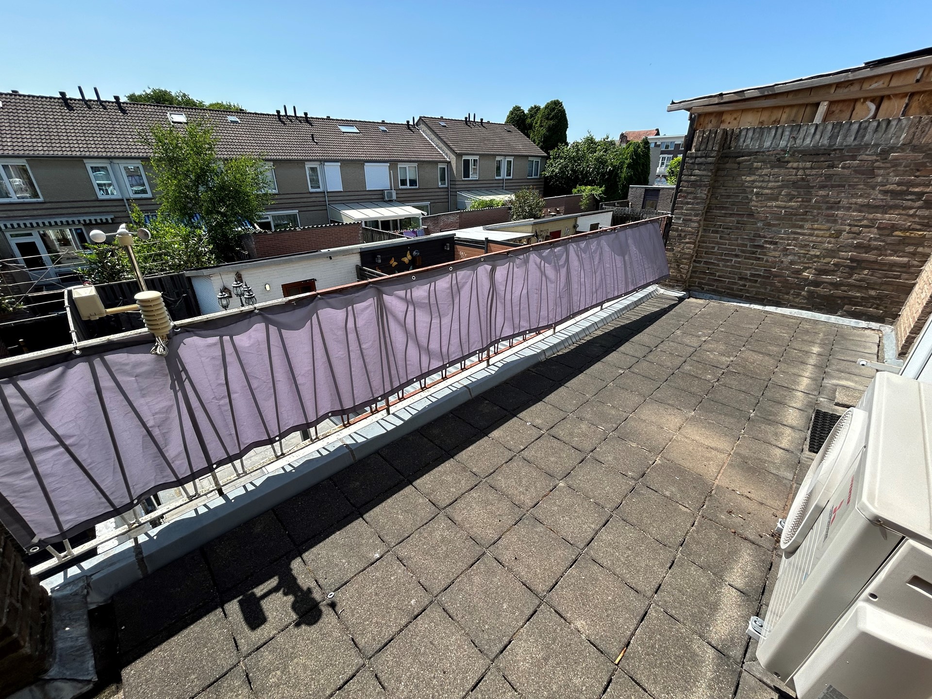 Slaapkamer 1: 3,75 x 3,60 met vloerbedekking op laminaatvloer, tv-aansluiting, openslaande deuren naar dakterras 6,20 x 2,40, airco, muurkast met cv-combiketel Remeha Avanta 28C van 2018 (eigendom).