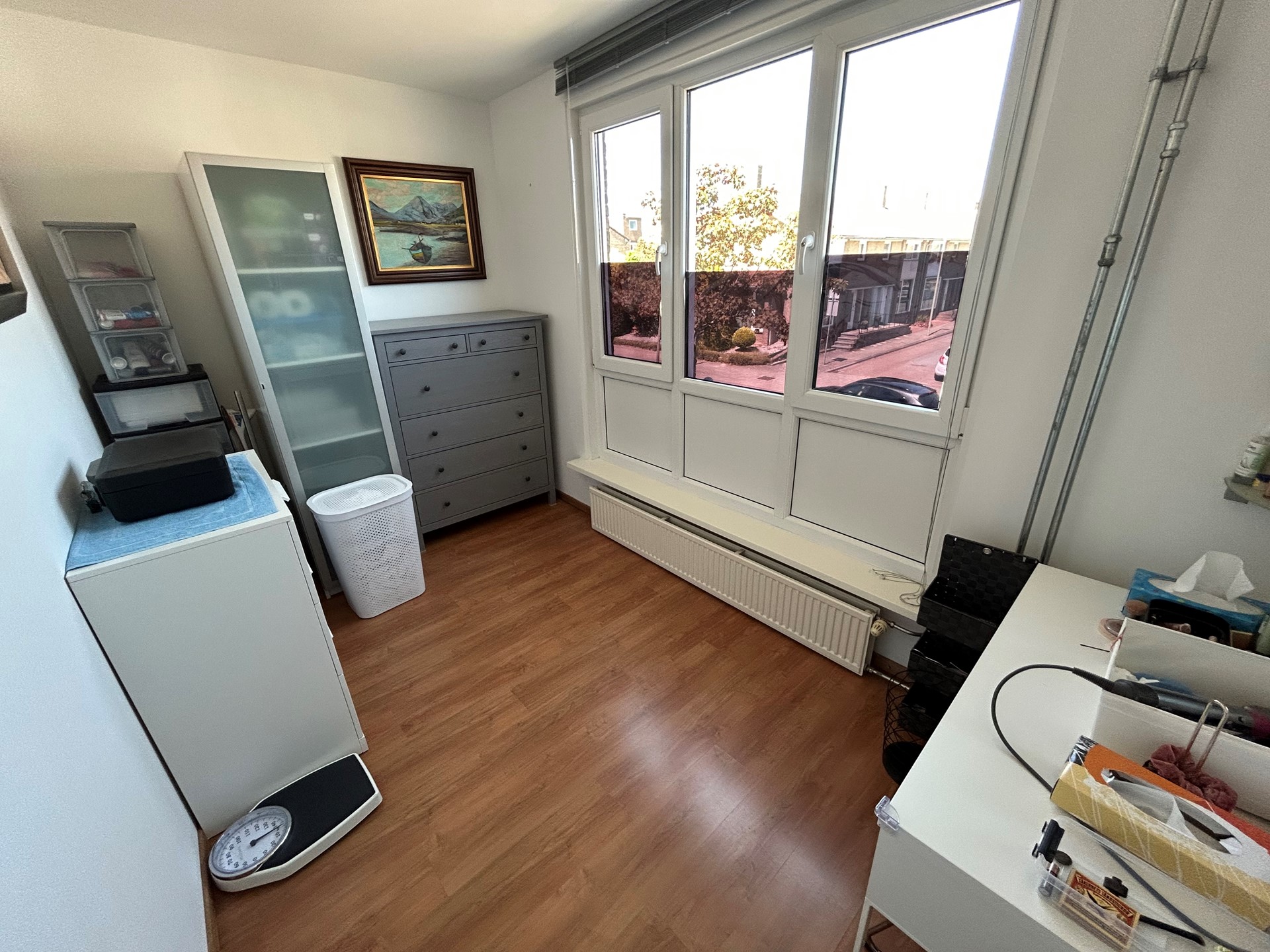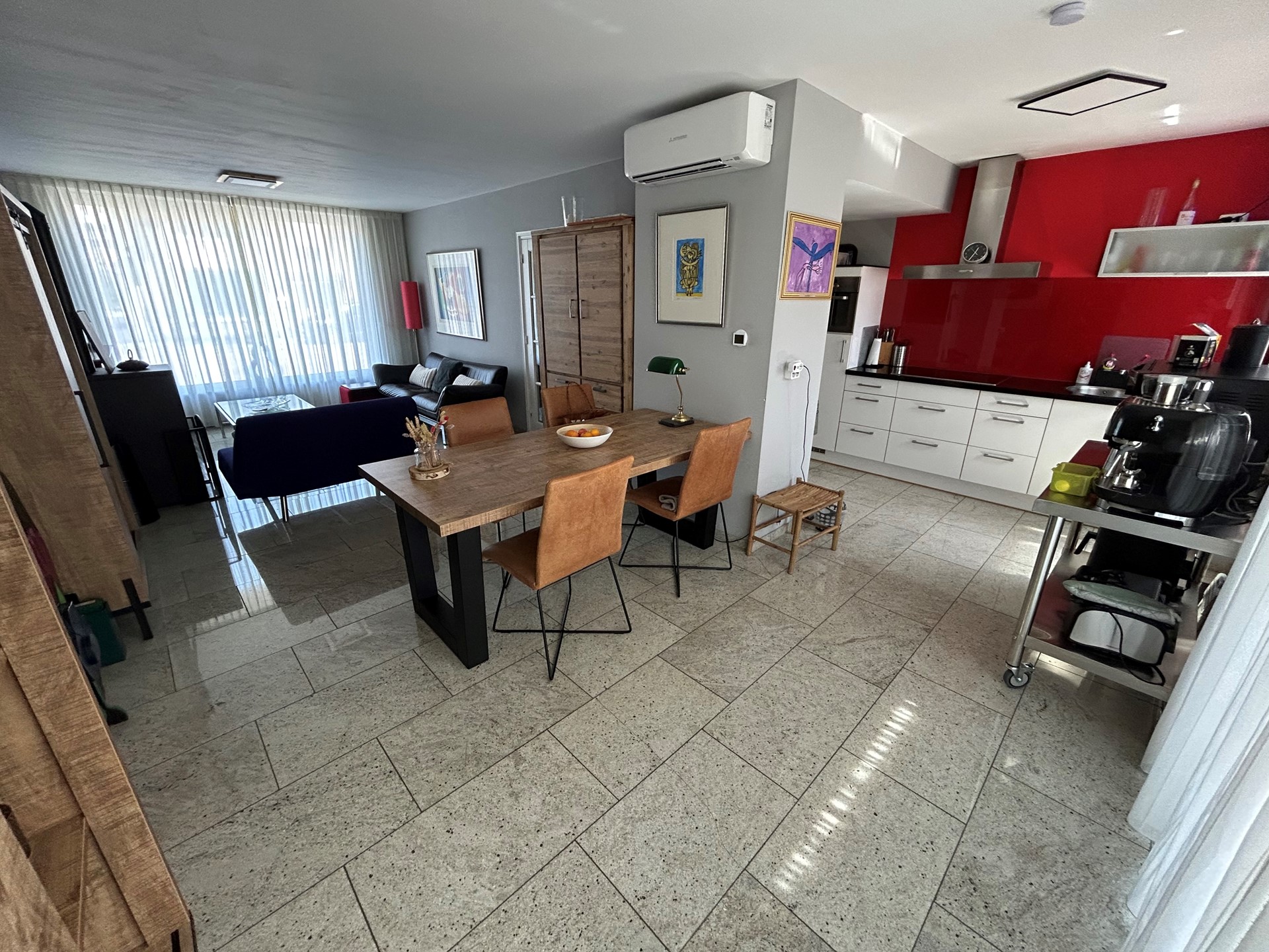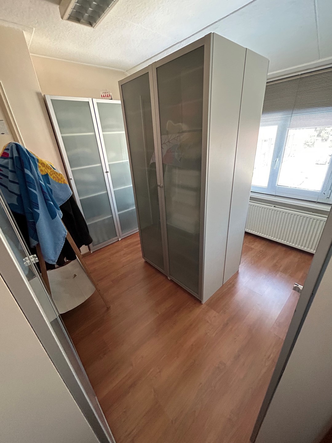 Slaapkamer 1: 3,75 x 3,60 met vloerbedekking op laminaatvloer, tv-aansluiting, openslaande deuren naar dakterras 6,20 x 2,40, airco, muurkast met cv-combiketel Remeha Avanta 28C van 2018 (eigendom).