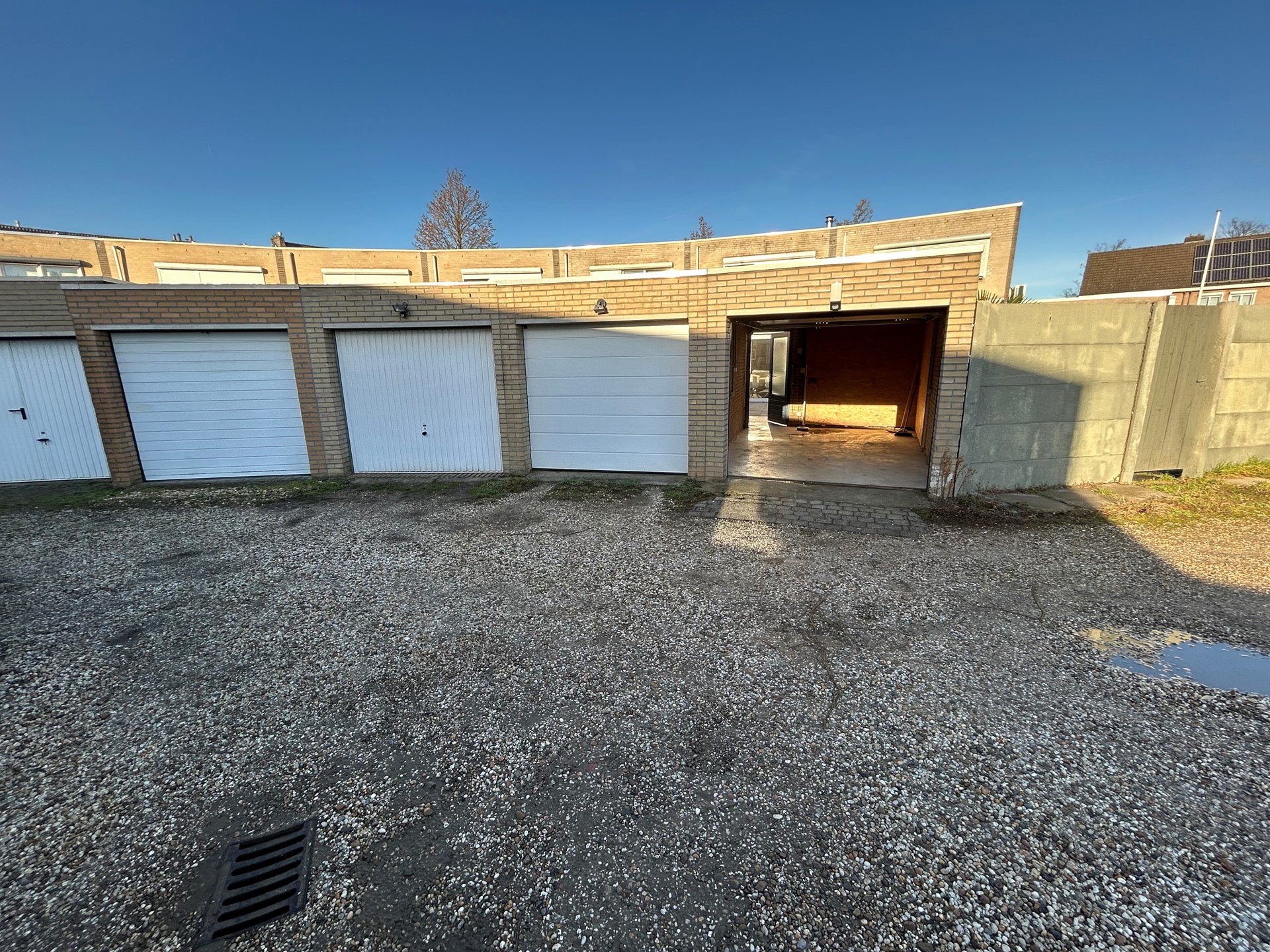 Garage 5,20 x 3,00 met elektrisch bedienbare sectionaal poort en stroomvoorziening.