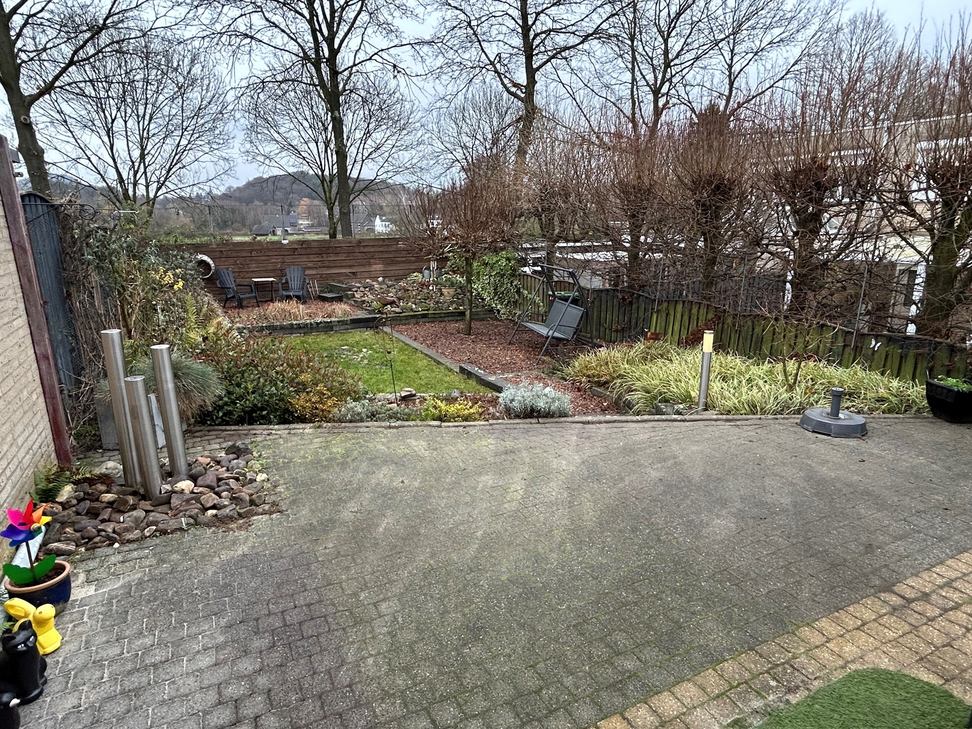 Prachtige ruime middels garage geschakelde eengezinswoning met grote L-vormige woonkamer met open keuken, mooie aanbouwkeuken, bijkeuken met toegang tot garage, drie slaapkamers, luxe badkamer met inloopdouche en hangtoilet, voortuin, lange oprit naar garage, achtertuin met overkapping, fraai uitzicht over omgeving en gelegen in de wijk Haanrade, gemeente Kerkrade.