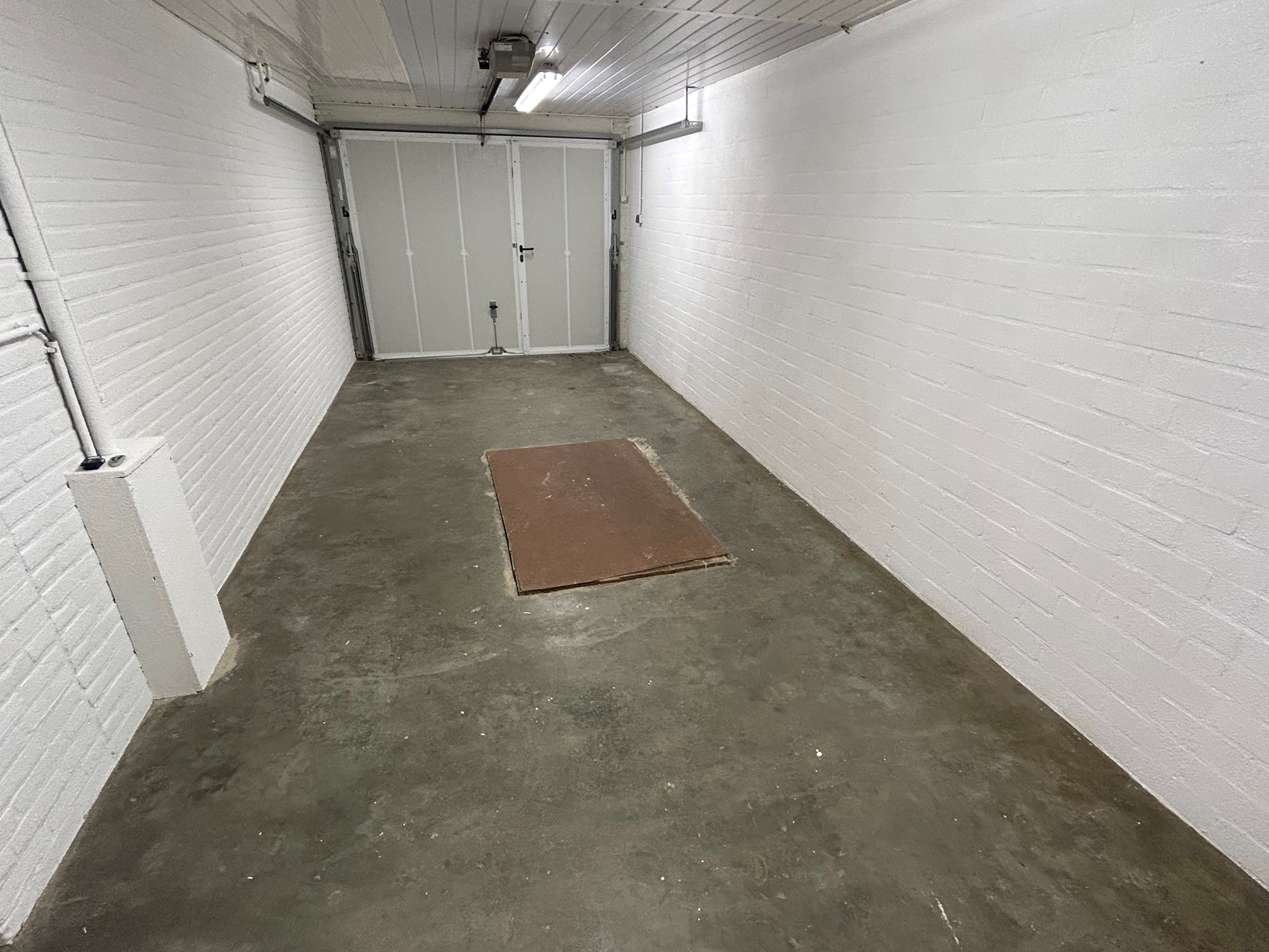 Garage 9,30 x 2,90/2,45 met elektrisch bedienbare sectionaal poort met loopdeur, smeerput, wasbak, elektriciteit en deur naar achtertuin.