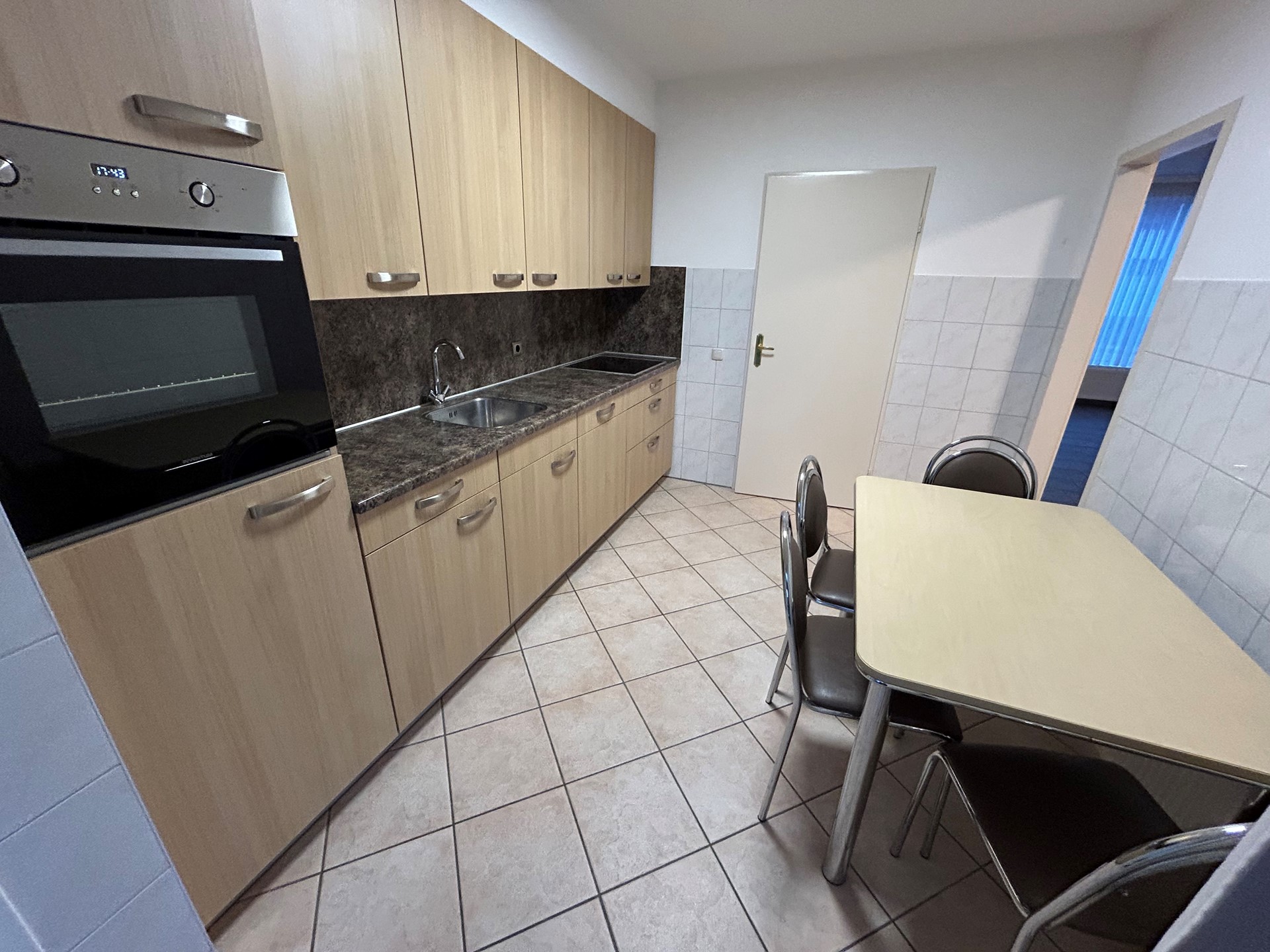 Keuken 3,35 x 2,75 met plavuizenloer, deur naar achtertuin en fraaie aanbouwkeuken met elektrische kookplaat met afzuigunit, combi-magnetron, vaatwasser, koelkast, spoelbal en elektrische boiler voor warmwatervoorziening keuken.