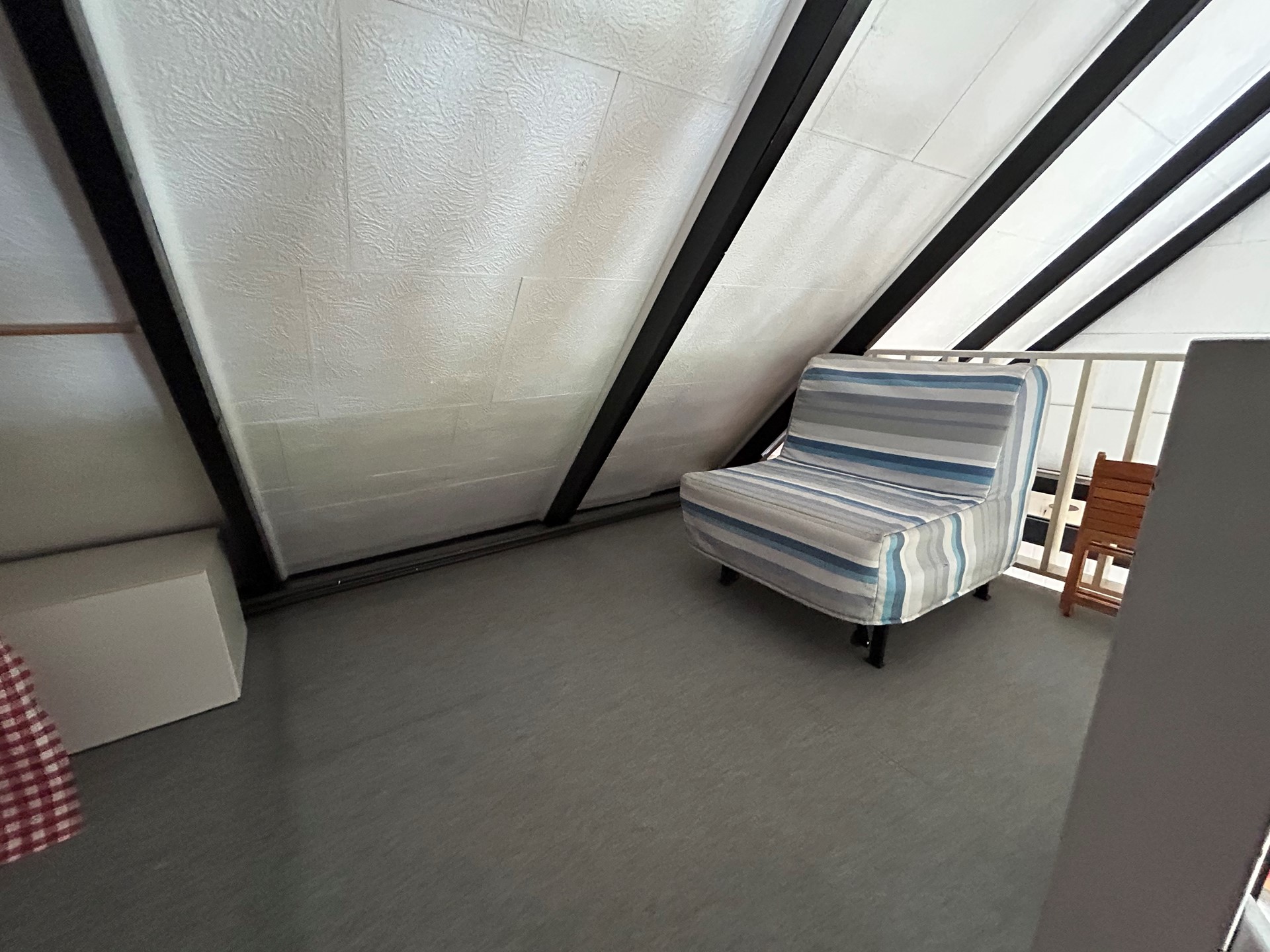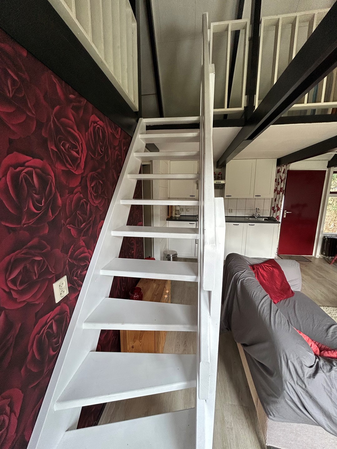 Overloop 2,40 x 0,95 met vloerbedekking.
