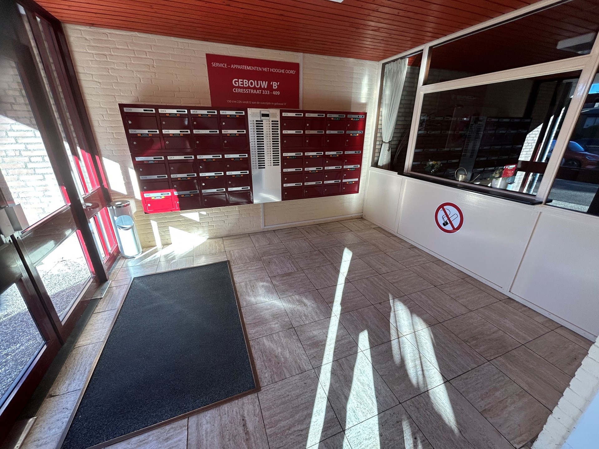 Centrale entree met intercom en videoinstallatie, brievenbussen en lift naar verdiepingen.